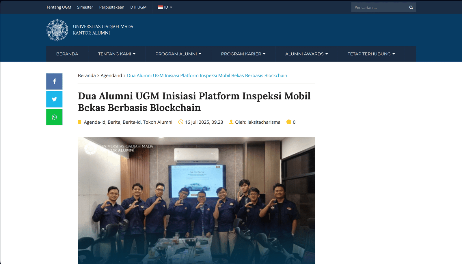 Mahasiswa dan Alumni UGM Kembangkan Platform Inspeksi Mobil Bekas Berbasis Blockchain