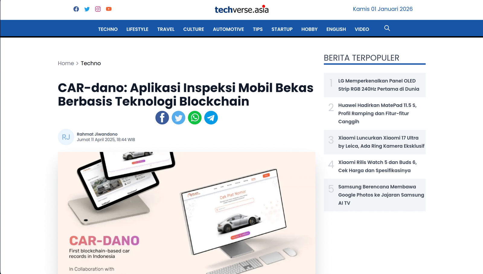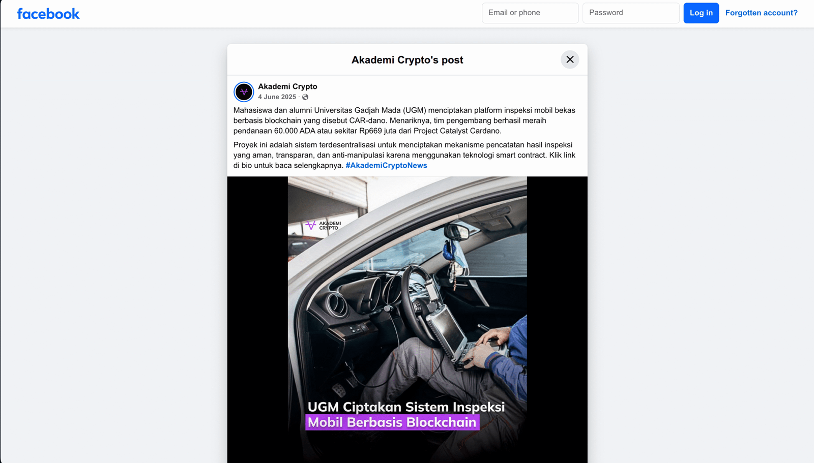 UGM Luncurkan CAR-dano: Solusi Inspeksi Mobil Bekas Berbasis Blockchain