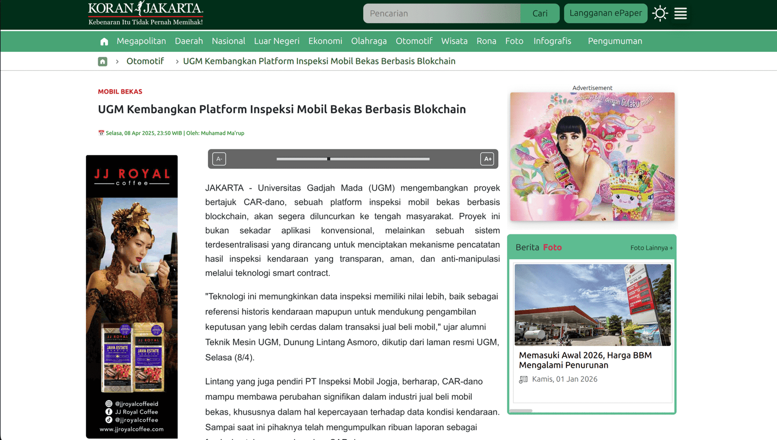 UGM Kembangkan Platform Inspeksi Mobil Bekas Berbasis Blokchain